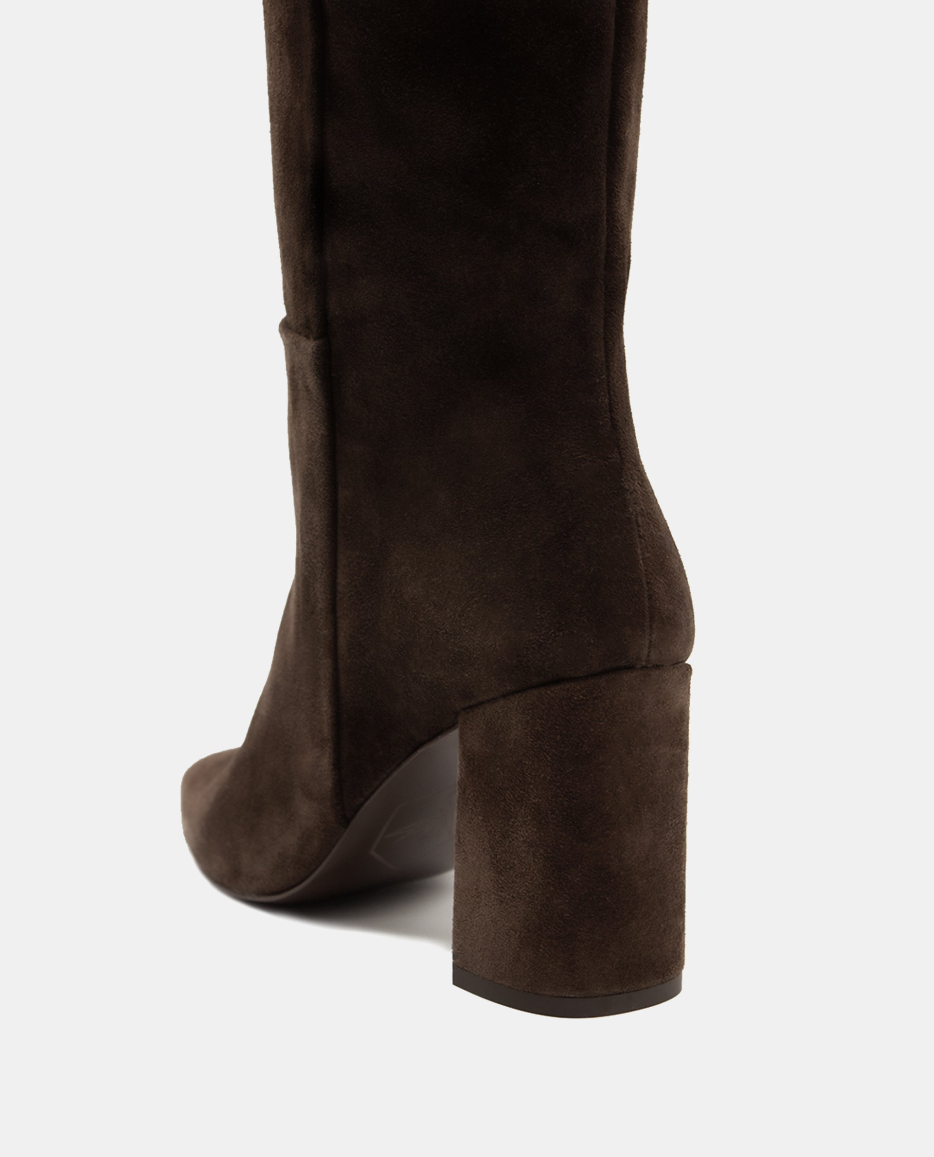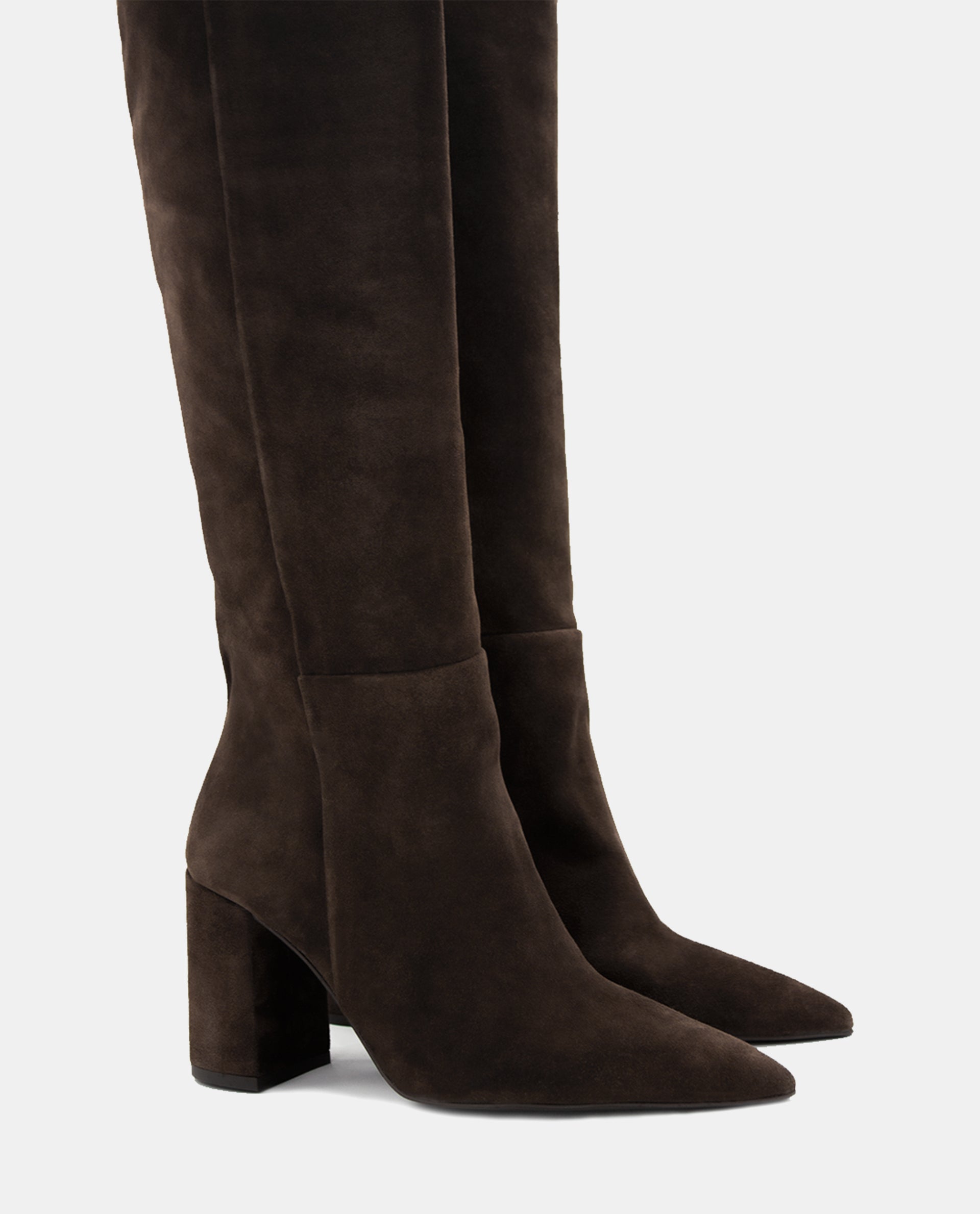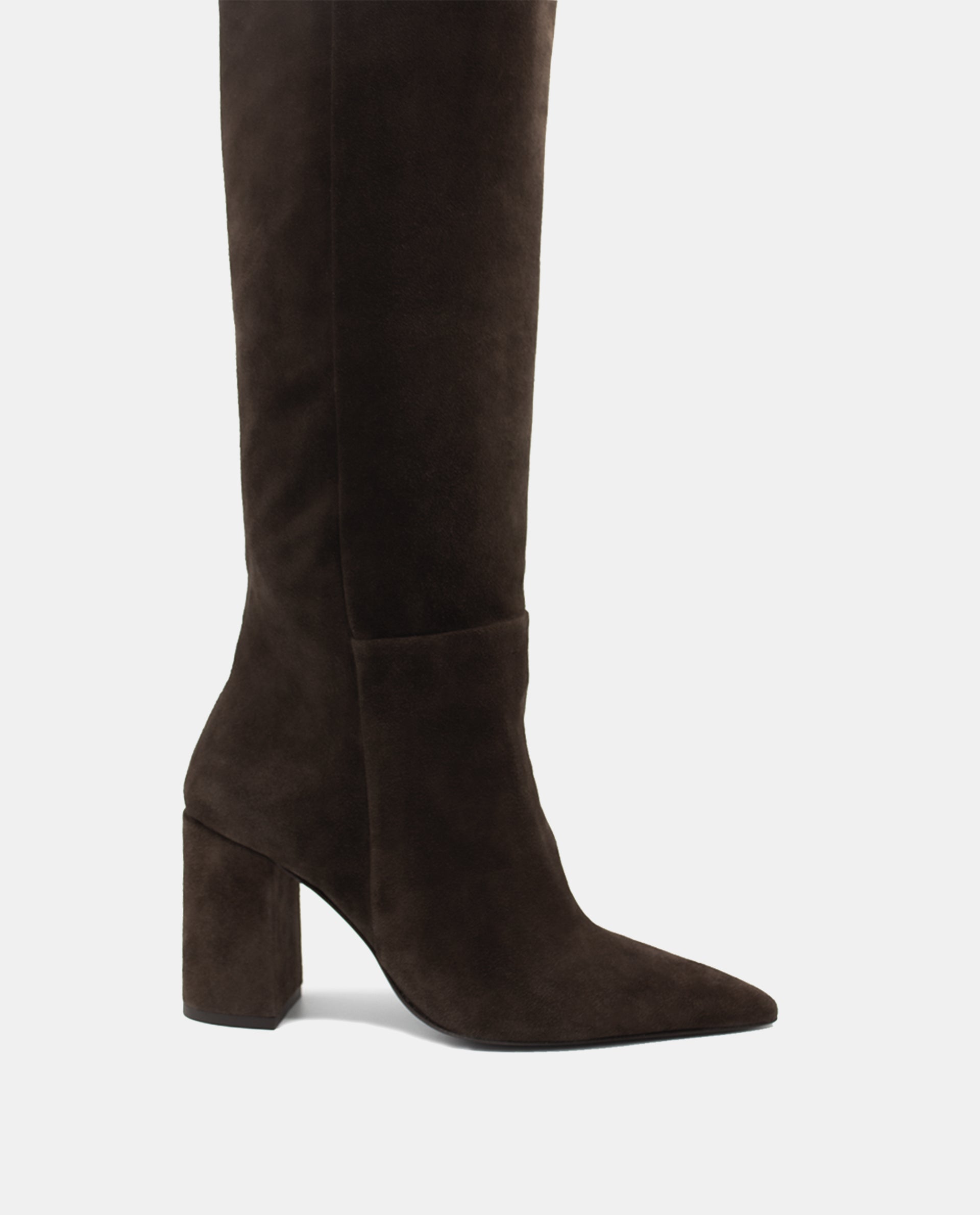 Elegant and timeless, the Brown Suede Knee-High Boot is crafted from soft genuine suede for a luxurious touch and flawless silhouette. Designed with a pointed toe and mid-height block heel, this boot combines sophistication with everyday comfort. Featuring a side zip closure for practicality, it’s the perfect statement piece for both day and evening looks.