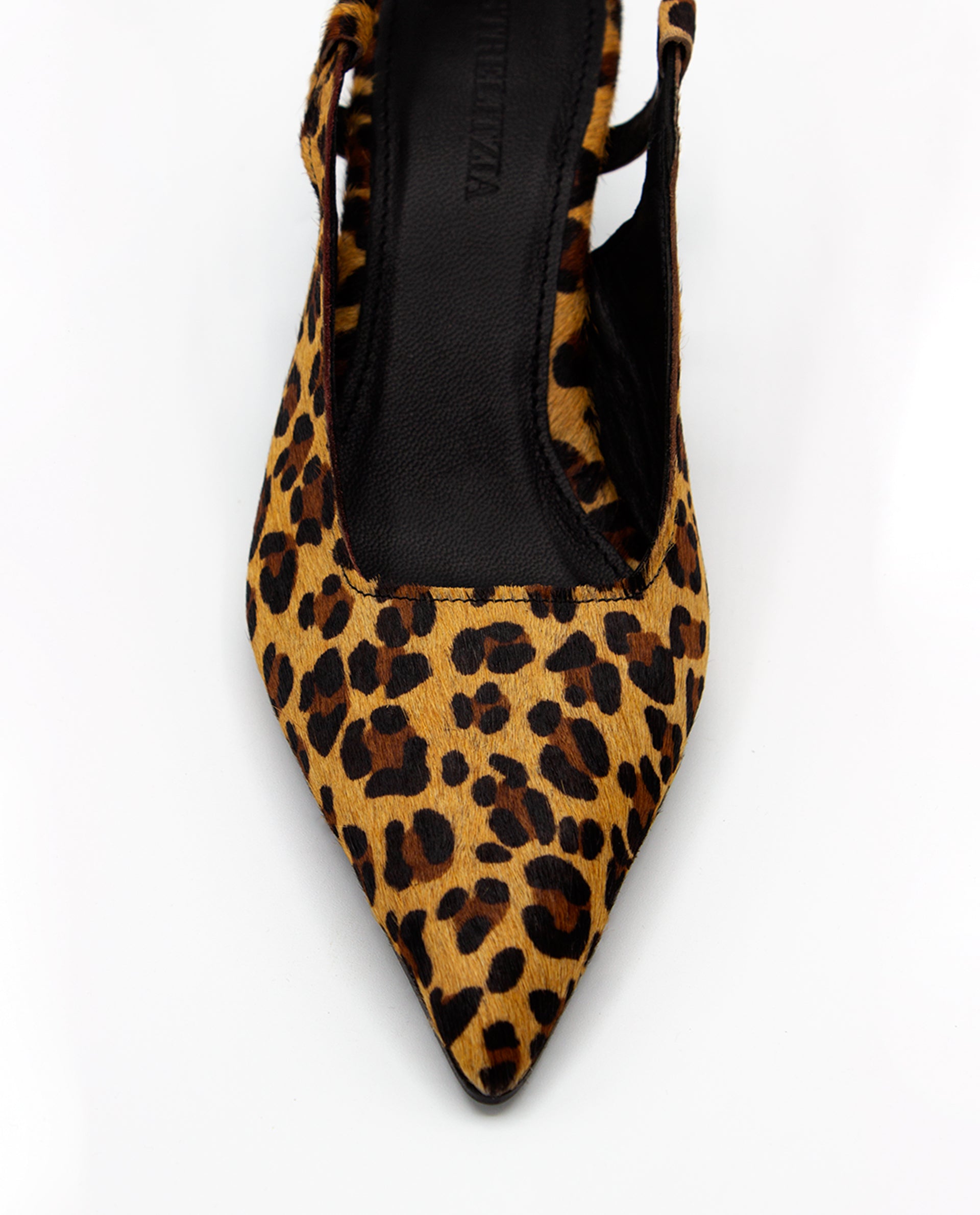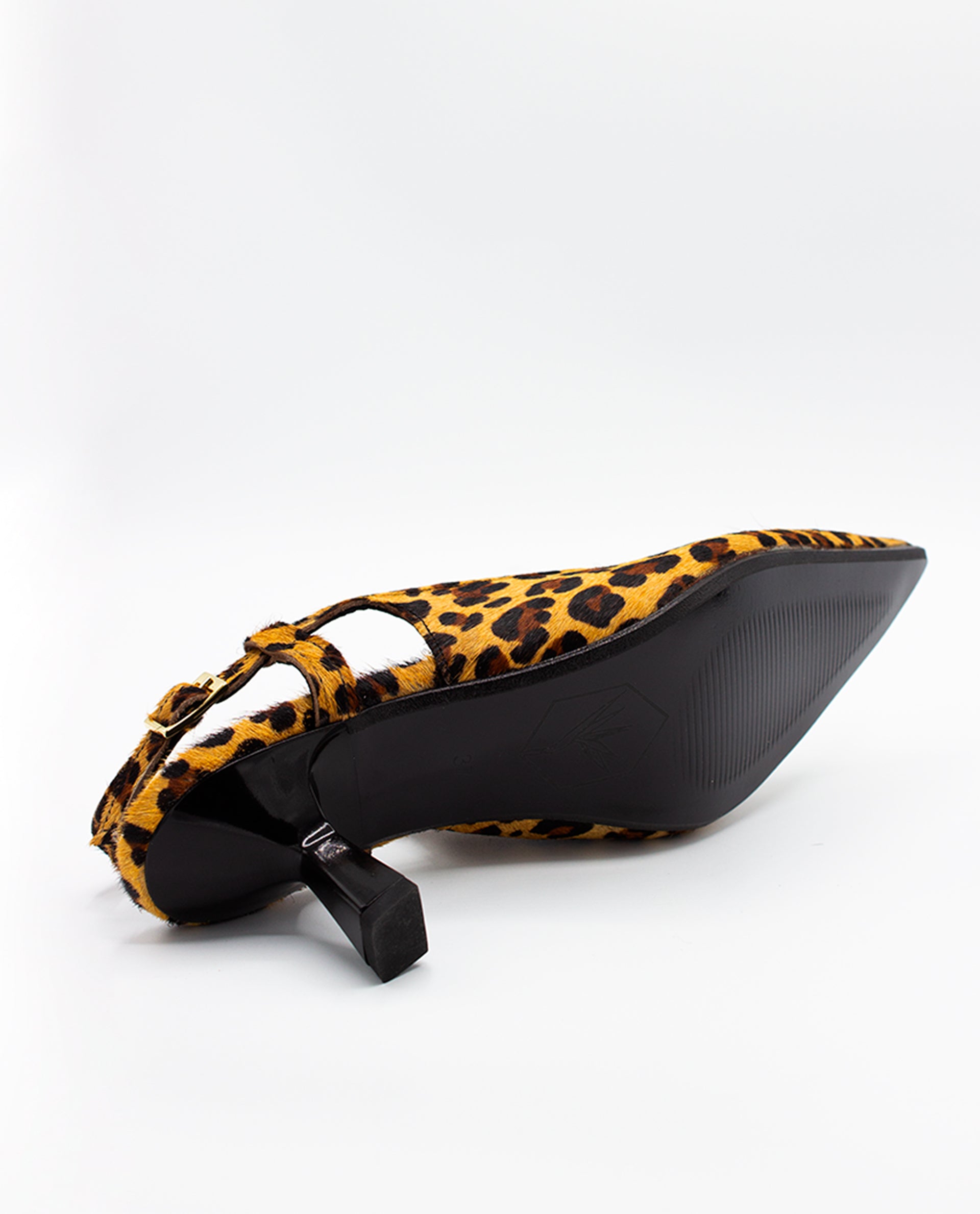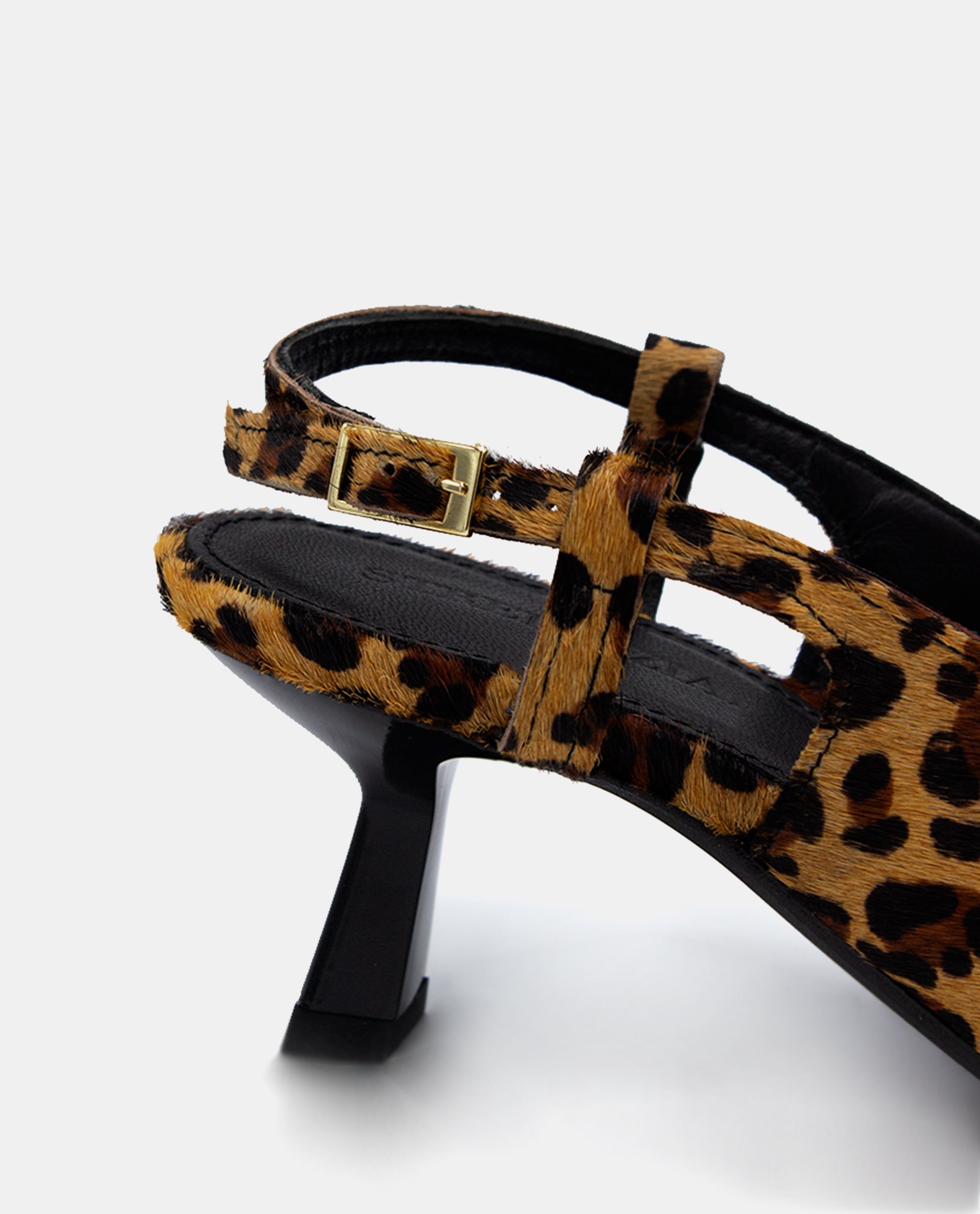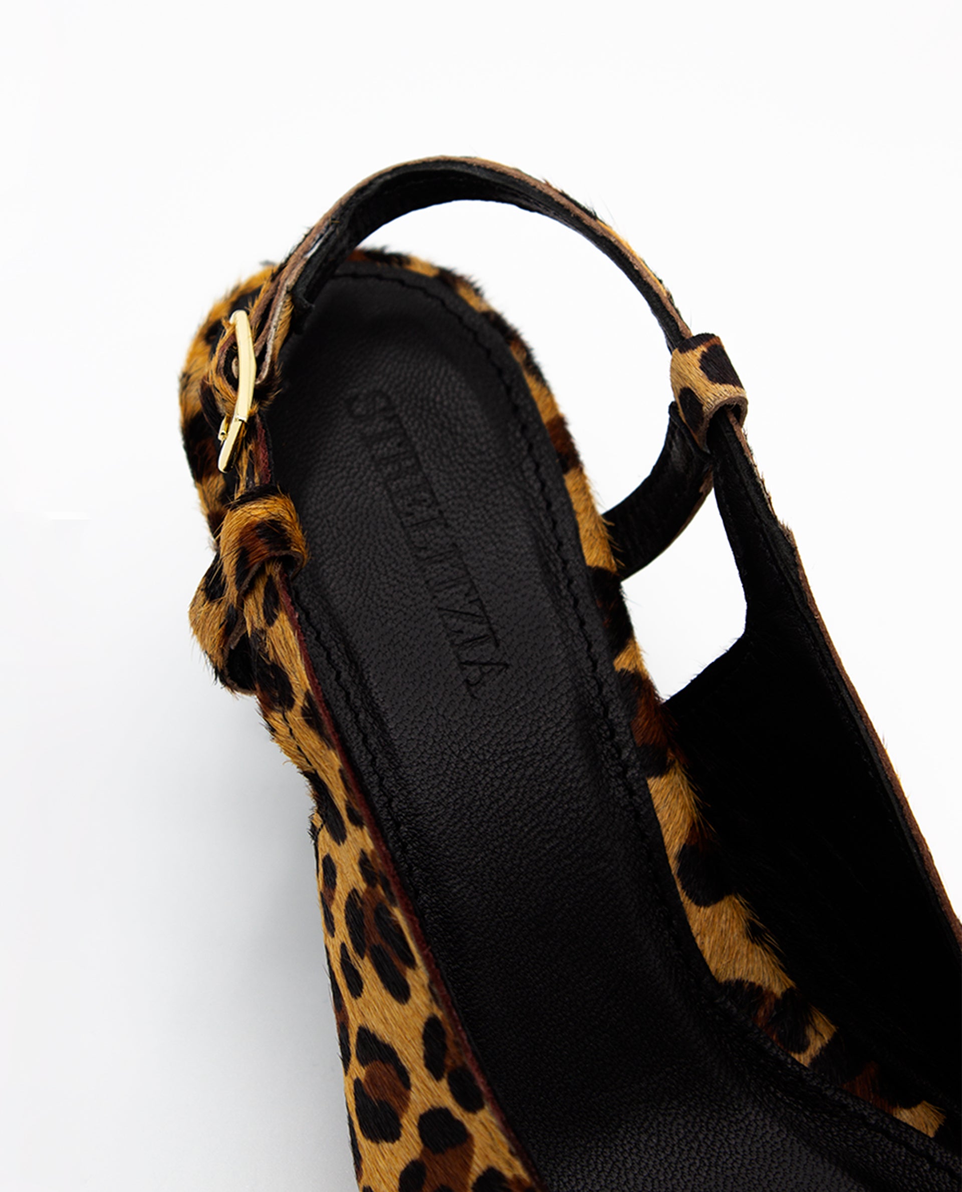 Make a bold yet timeless statement with the Léo Slingback, crafted in genuine animal hair leather with a striking leopard print finish. The pointed toe elongates the silhouette, while the mid-height heel offers the perfect balance of comfort and sophistication. A true wardrobe icon that transitions effortlessly from day to night.
