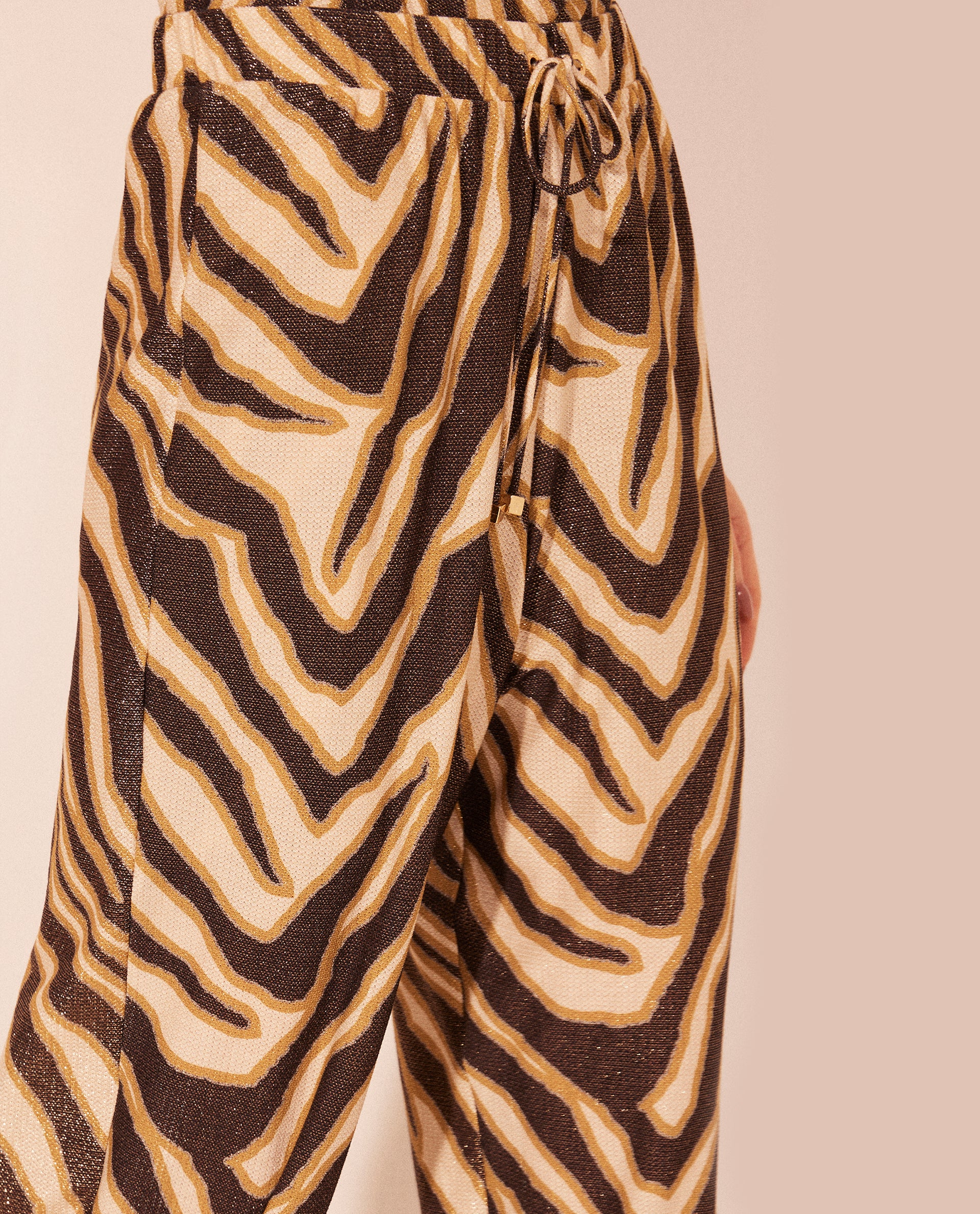 The style features straight leg , elastic waist , low waist , tying at the waist with eyelets finished with aglets.