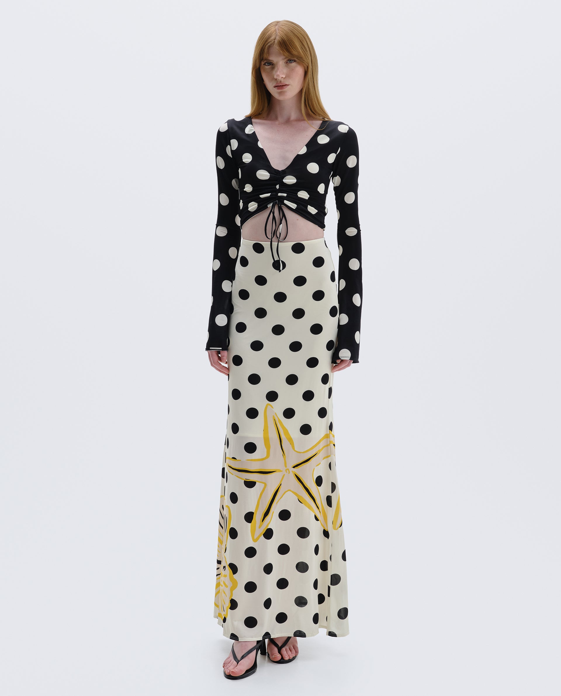 The Oryx Maxi Skirt, crafted in soft visco jersey, features a long, flowing silhouette with a draped waistband and subtle ruching that creates an elegant, fluid look. The back cut-out detail and slit add movement and sophistication, making it perfect for both casual and refined styling.